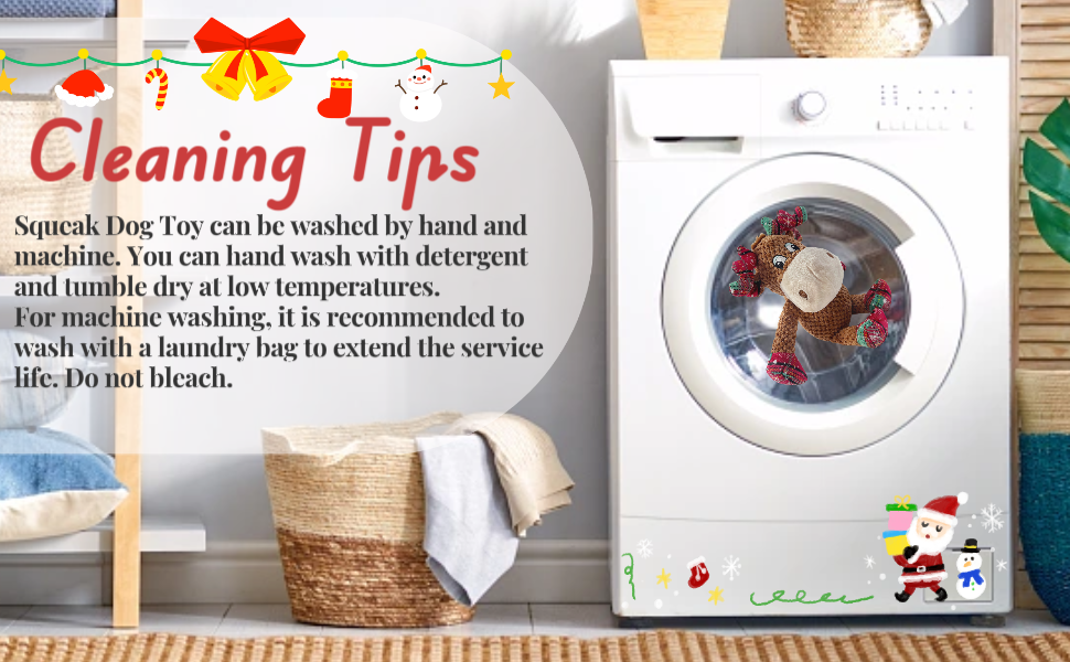 - [Unique Design & Teething Cleaning] Measuring 27cm x 28cm x 17cm (10.62in x 11.02in x 6.69in), these toys have unique Christmas elements in the hands, ears, and feet section that help clean your dog's teeth. No need to worry about your dog's dental health with these great toys for small, medium, and large dogs.