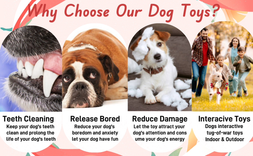- [Tough Plush Dog Toys] Made with premium plush material, these dog toys are durable and can withstand stretching and biting without breaking easily. They also work as a dog's toothbrush, with the surface fuzz rubbing against the puppy's teeth to wipe off stains and leave no bad smells in their mouth. Keep your puppy clean and healthy by letting them bite on these toys more.