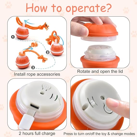 Interactive Dog Toys,Peppy Pet Ball for Dogs,Motion Activate Rolling Ball for Puppy/Medium Dogs,Active Rolling Dog Bal l Wicked Bal l for Daily Training, Dog Toys to Keep Them Busy (Orange)