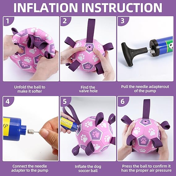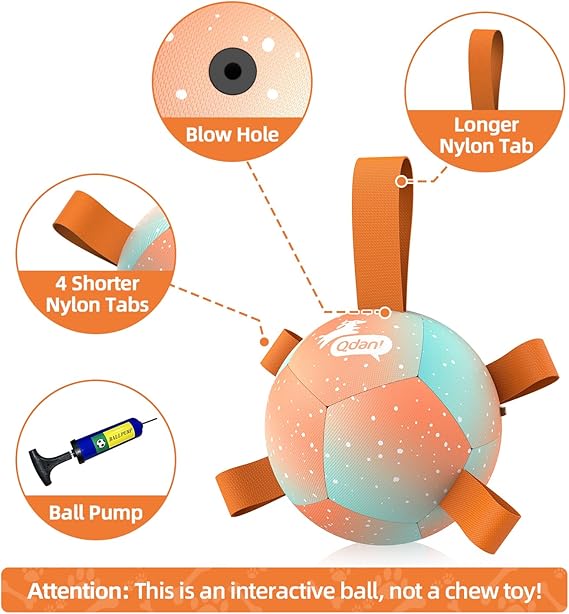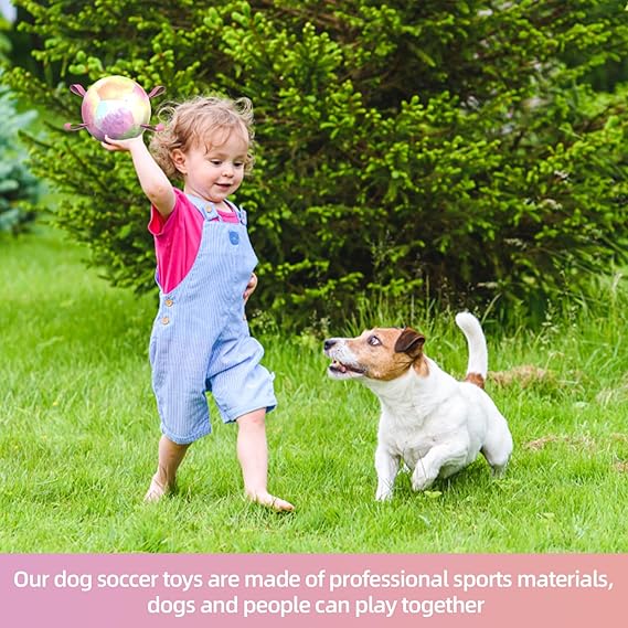 QDAN Premium Dog Toys Soccer Ball with Straps, Puppy Balls for Small Medium Dogs, Dog Water Toys Pool Toys, Puppy Dogs Pet Birthday Gifts, Rainbow(6 Inch)