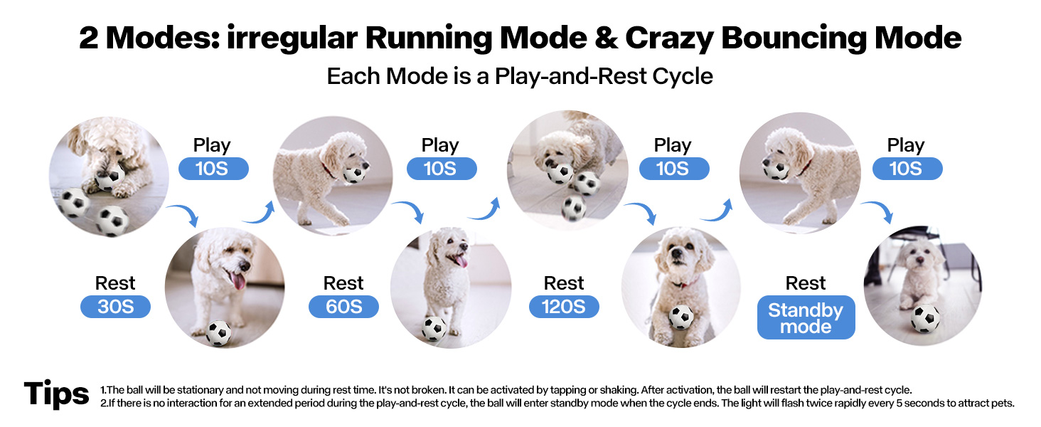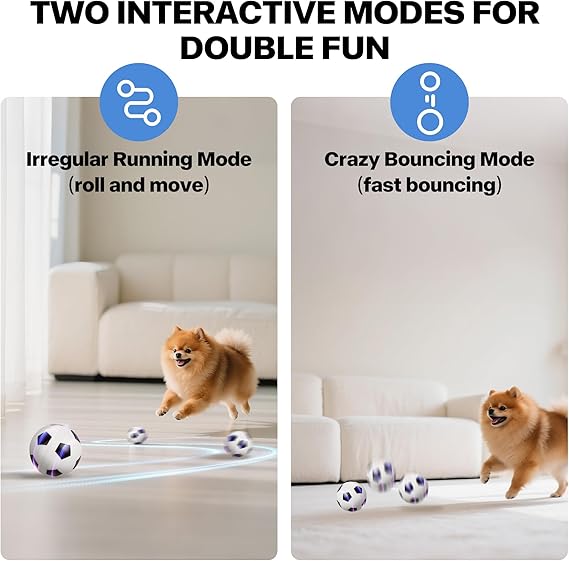- Engaging Play Modes: Enjoy double the fun with two exciting modes! The first mode features irregular running for unpredictable movement to keep your dog engaged. Switch to the second mode for crazy bouncing action that will have them jumping for joy
