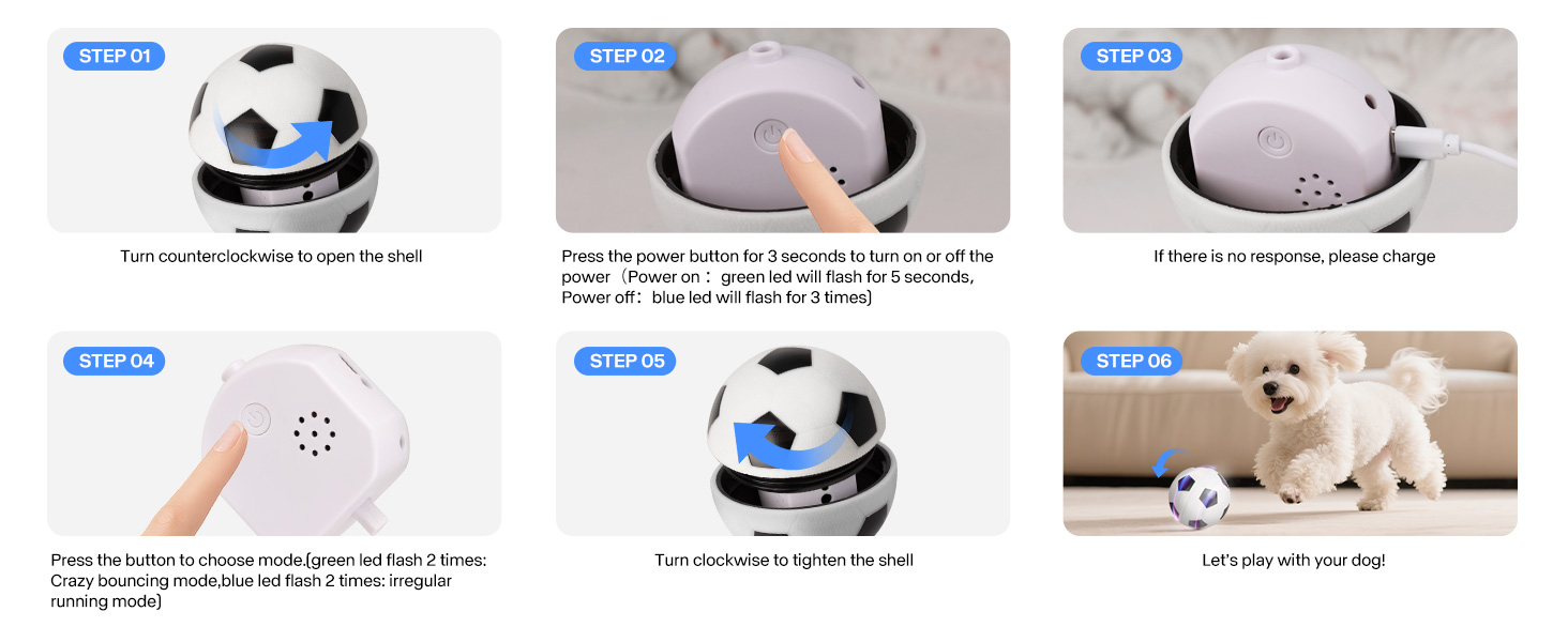 - Type-C Rechargeable Convenience:No more fussing with batteries! Our active rolling ball comes with a rechargeable battery, fully charged in just one hour. Enjoy 1 hour of uninterrupted play or up to 3 hours of intermittent fun