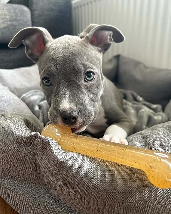 Satisfy your dog’s natural instinct to chew with the Flexi Chew Gumabone. It’s designed with a bouncy, flexible material that’s just right for moderate chewers who prefer a gummy texture, especially senior dogs! Plus, this chicken chew toy’s tasty flavor throughout keeps your dog happily chewing. Made with heart and purpose, this veterinarian-recommended chew toy is a must-have for every moderate chewer!