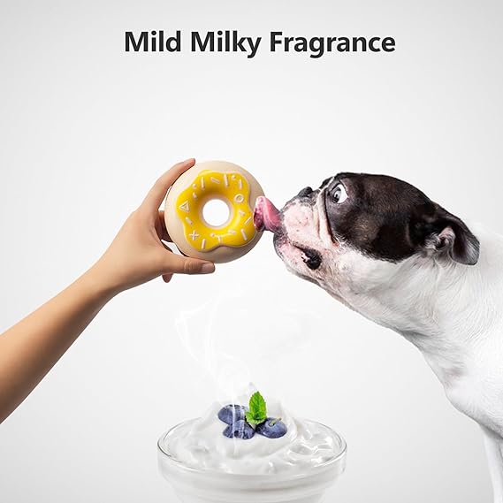 - Squeaky & Scented to Excite: With a cute donut shape, bright color, gentle milky scent, and fun squeaky sound, this toy stimulates your dog's senses and grabs their attention. It keeps them busy, relieves boredom, and adds daily fun to your dog's routine