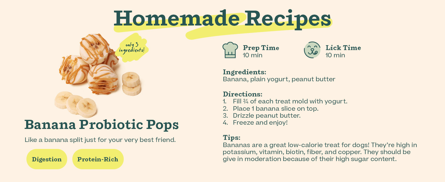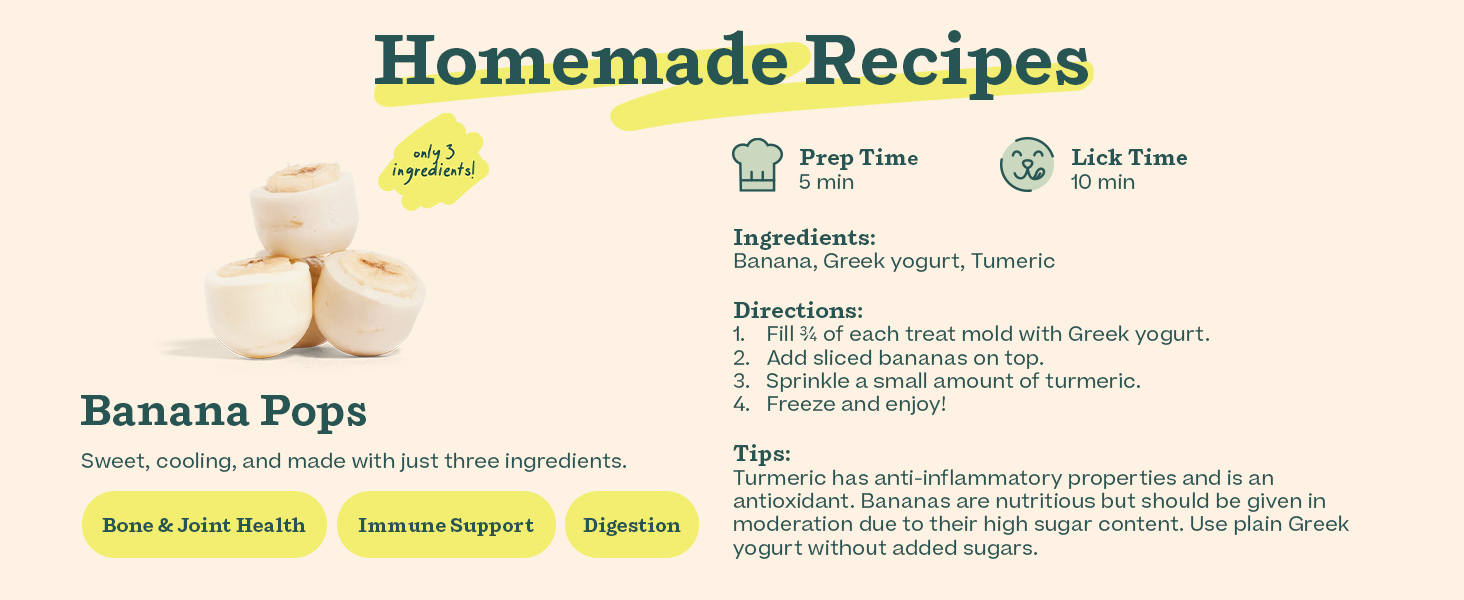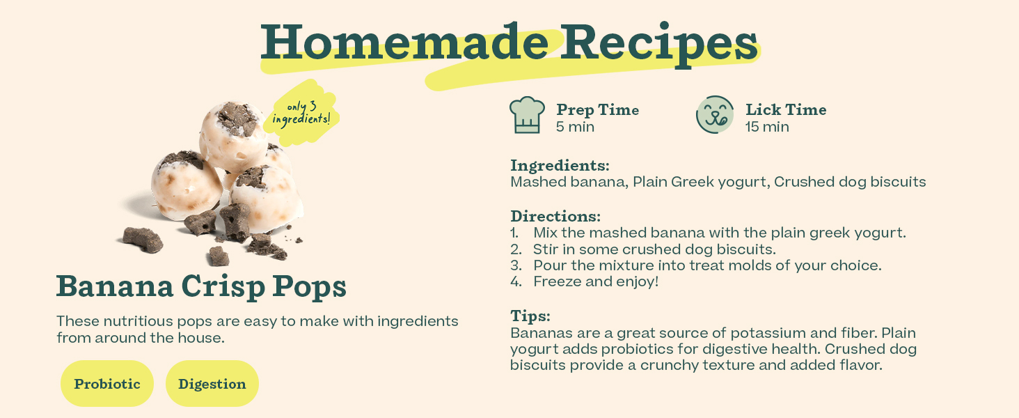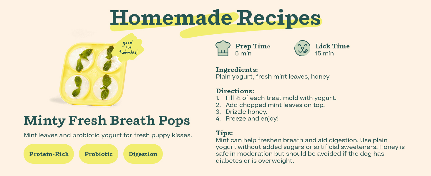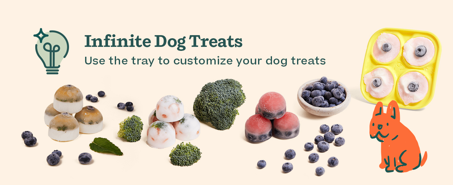 - Enjoy Infinite Treats: Out of pops? No problem. Fill our dog treat molds with anything from wet food to broth, yogurt, peanut butter, or dog treats. Now, you can create homemade frozen dog treats with ingredients you trust and your pup loves. Get creative and experiment!