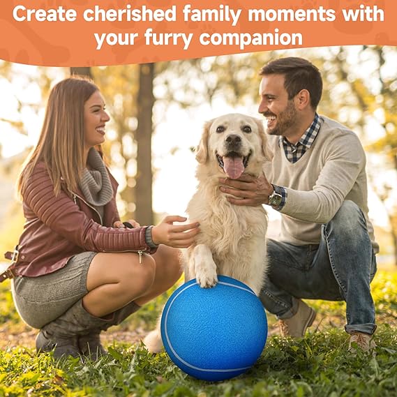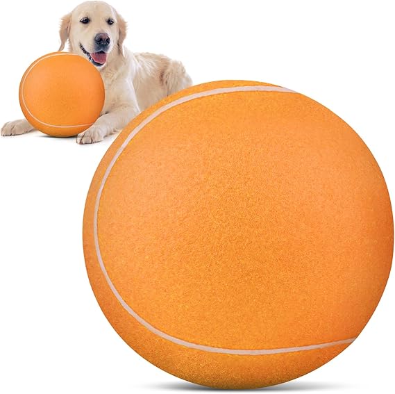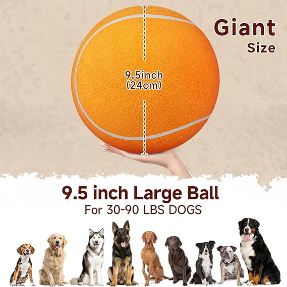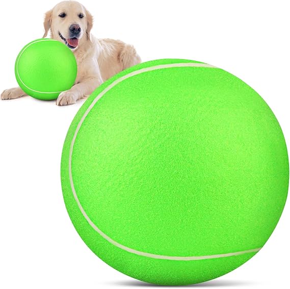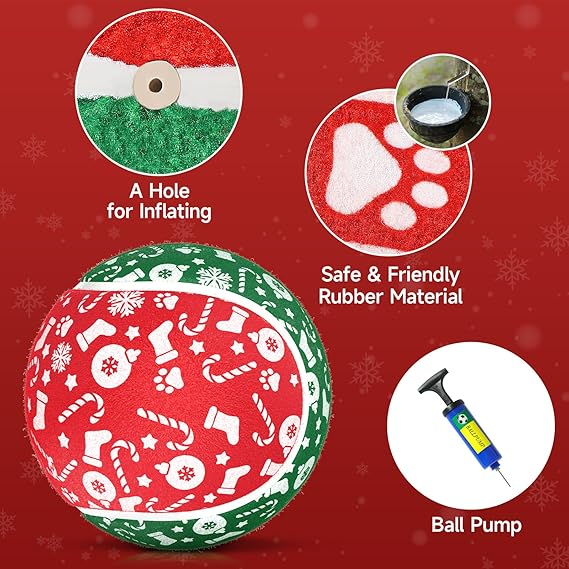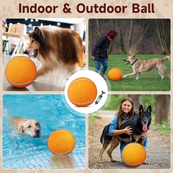 - Pump and Needle Adapter Included: The tennis ball for dogs comes deflated. There's a needle point adapter and a pump inside. The ball dog toy is 9.5 inches in diameter, perfect for large giant breeds.