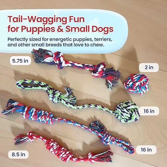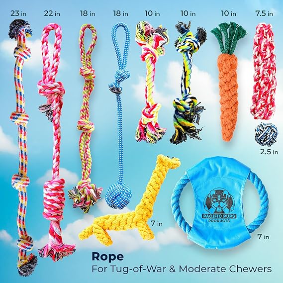 Pacific Pups Products Dog Rope Toys for Medium Dogs 11 Pack - 11 Dog Toy Pack & Puppy Teething Rope Tug of War Dog Toys, Chew Toys to Keep Them Busy, Puppy Chew Ropes