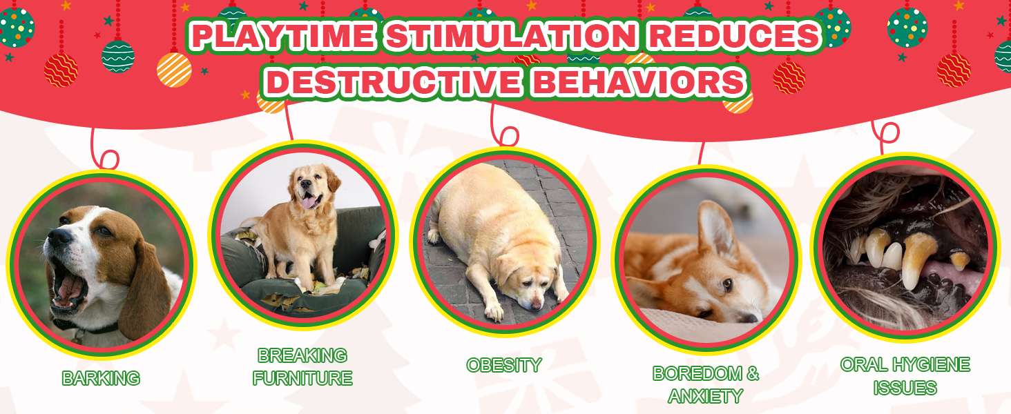 - 【Squeaky Dog Toys】The Christmas reindeer, ball, and tree come with built-in squeakers that emit sounds to capture your dog’s attention and stimulate their desire to play