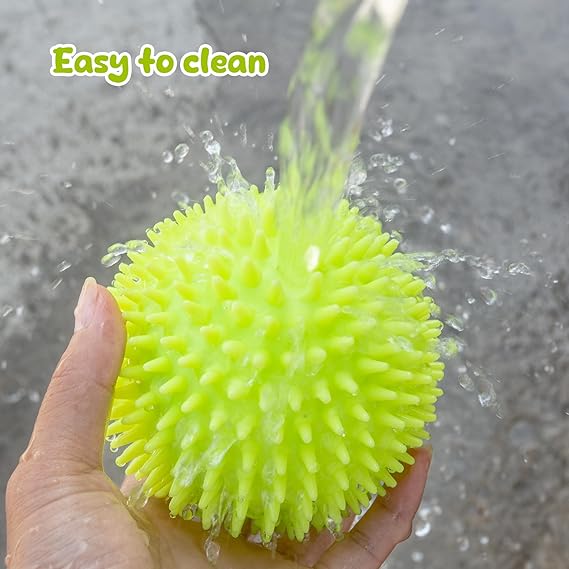 - Spiky Dog Ball: This dog teething toys helps clean teeth during play. The soft spiky texture simulates a toothbrush, keeping the mouth clean while protecting the squeaker from direct bites. Great dog spiky dog ball for teething and dental cleaning