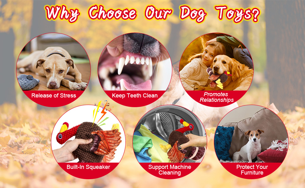 - THANKSGIVING TURKEY DOG TOY - Dog toys to Keep them busy with various interactive features, making it the perfect Thanksgiving gift for your furry friend.