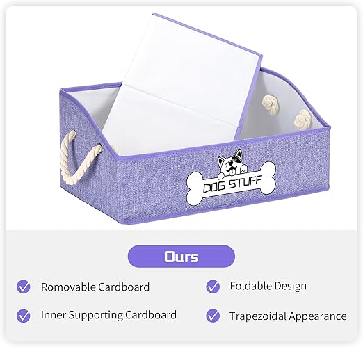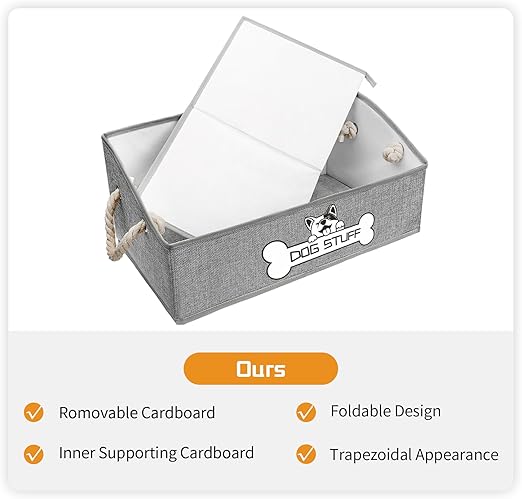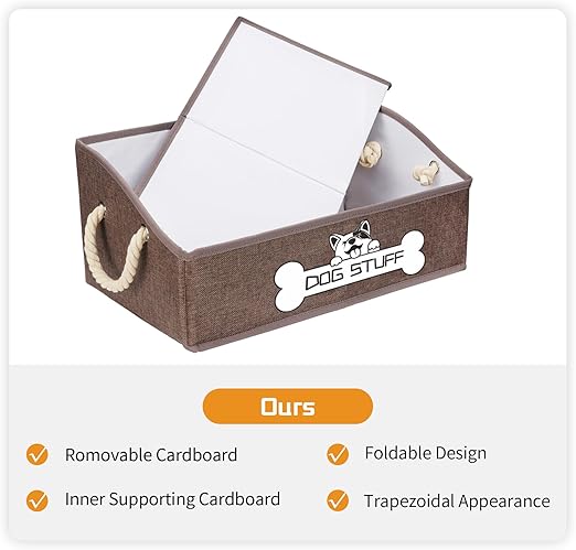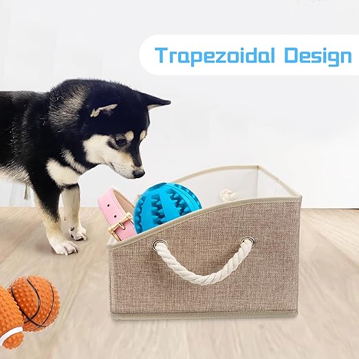 - Premium Quality: The dog toy bin is made of canvas with movable cardboard at the bottom, which is durable, stable, and firm. Sturdy thickened weave ropes can provide soft gripping and are easy to move even with a heavy load.