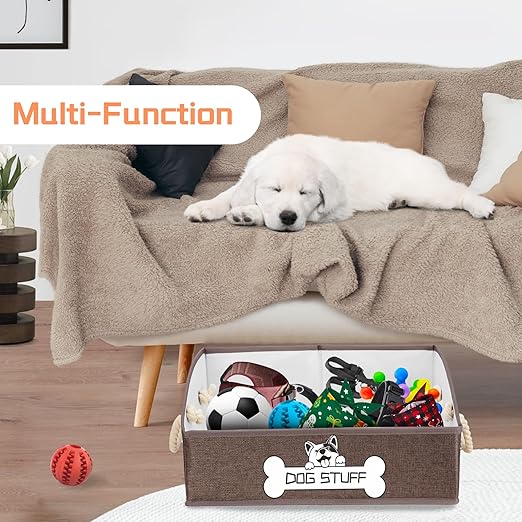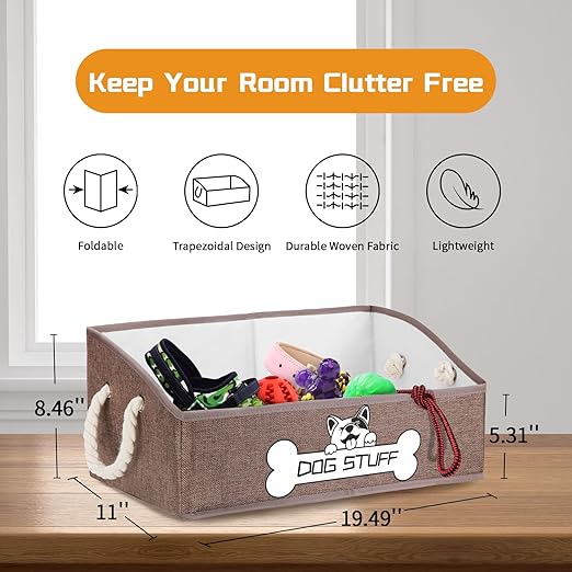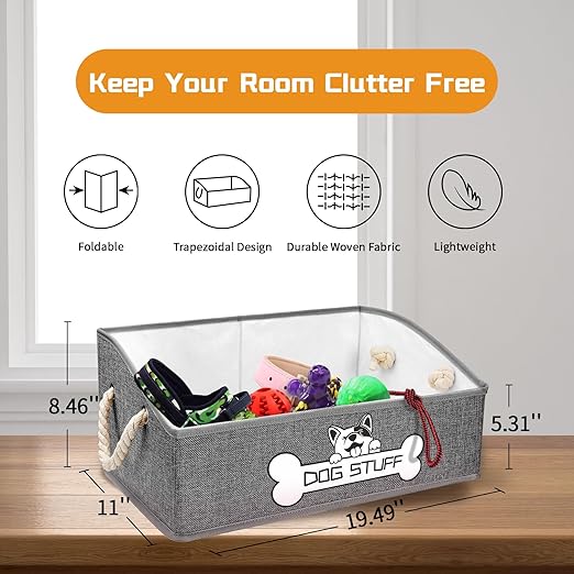 - Large Capacity: The dog toy box has a size of 19.5 (L) x 11 (W) x 8.5 (H) inches, which has a large space for many of your pet's accessories and keeps your room clean and clutter free. It can easily hold dog toys, collars and etc.