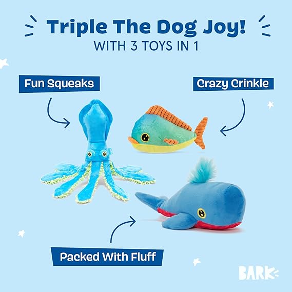 Barkbox Best of BarkBox Bundle - Squeaky Dog Toys - Plush Chew Toys - Puppy and Pet Toys for Medium and Large Dogs - Gordon The Sloth, Dingbert The Dragon, and Ollie The Octopus