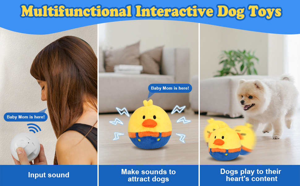 - 【FUNNY AND ENGAGING PLAY】- This interactive electric bouncy duck ball toy keeps pets entertained with its ability to move, bounce, spin and interact through recording playback features. This toy can withstand vigorous play while providing mental stimulation for dogs