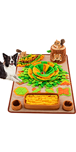- 【Non-Slip and Portable Design】 The base of this dog puzzle toy is made of non-slip cloth so that can not move on the floor easily. In addition, the carrying strap on one side of dog foraging mat is easy to take, and it can also be attached to a table leg or other item so that the dog cannot move the sniffing mat.