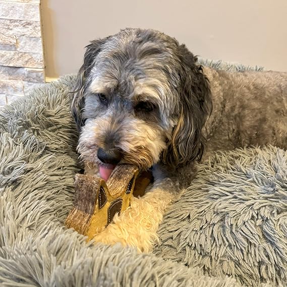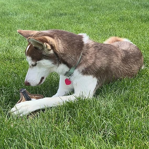 Dura-Fused Chunkies combine real leather with wool felt fabric in between for added thickness and strength. Stitching through all layers with heavy duty thread adds extra durability. Popular bone shape that dogs love!