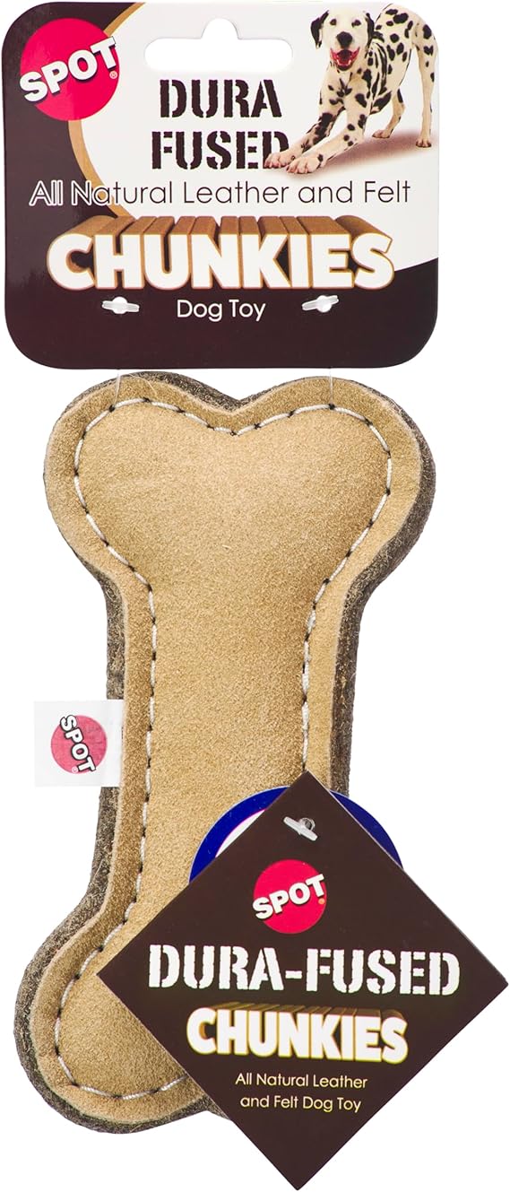 SPOT Dura-Fused Chunkies- Bone - All Natural Leather and Felt Dog Toy- Durable, Long Lasting, Extra Thick Dog Chew Toy for Aggressive Chewers, Great for Adult Dogs and Teething Puppies, 6in