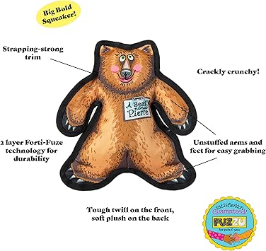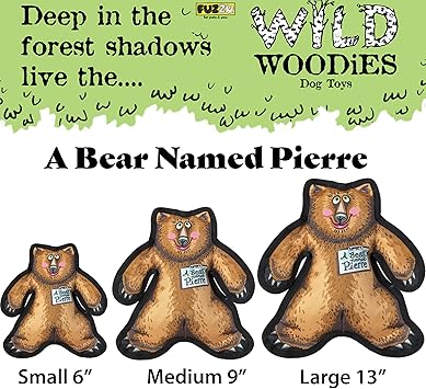 FUZZU Wild Woodies Dog Chew Toy | A Bear Named Pierre Dog Toy | Durable Squeaky | Dog Chew Toy | Rugged Dog Toy | Medium | 9"