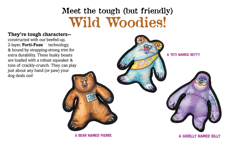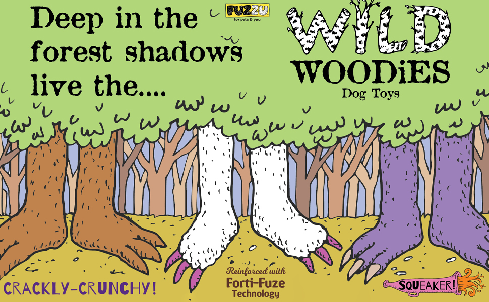 - KEEP THEIR ATTENTION: Wild Woodies have a fun SQUEAKER, crackly-crunch fill and a soft, plush back
