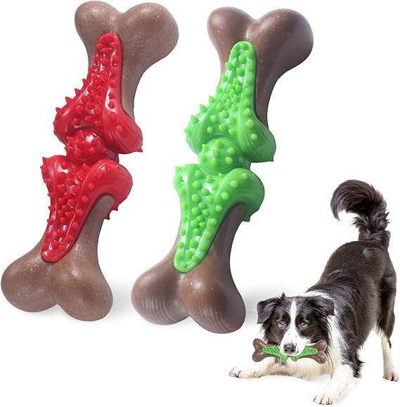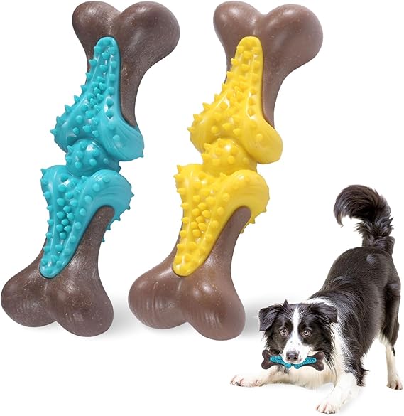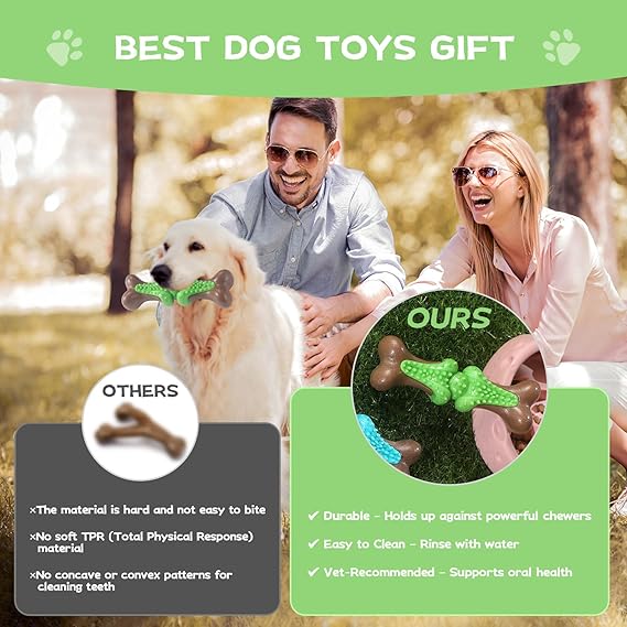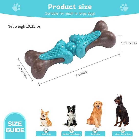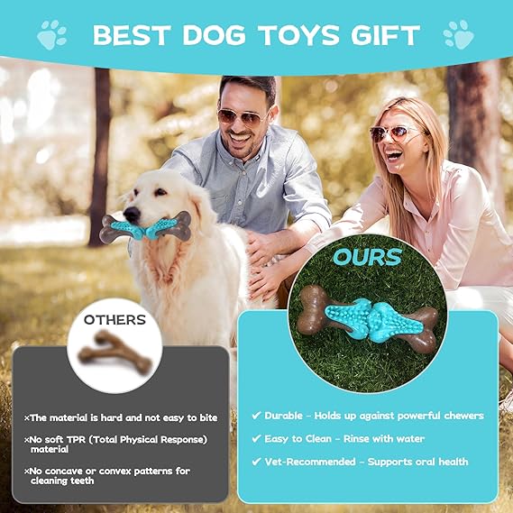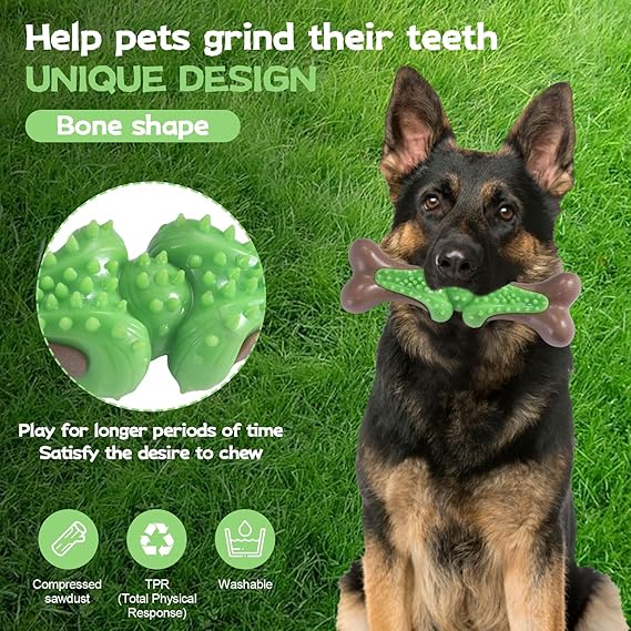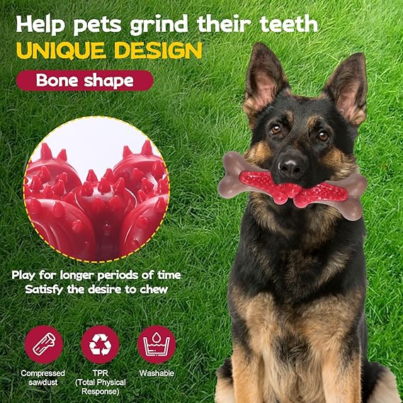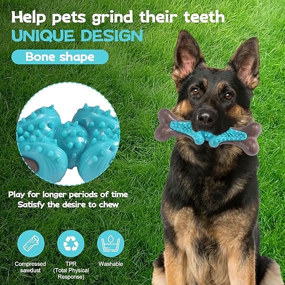- 【Promotes Dental Health & Fresh Breath】 More than just dog bones, this chew toy has a textured TPR surface that cleans teeth, reduces plaque, and massages gums. Ideal as dog teeth cleaning chews for teething puppies or adult dogs needing fresher breath—dog chew toys for aggressive chewers that care for their health!
