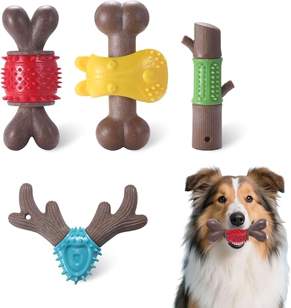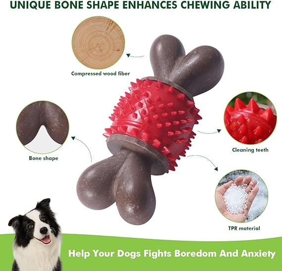 - 【100% Safe & Non-Toxic Materials】 Made with food-grade TPR and natural wood, this dog chew toy is free from harmful chemicals—unlike other dog bones for large dogs. Vet-recommended for super chewer dog toys large breed, ensuring safe, worry-free playtime indoors or outdoors.