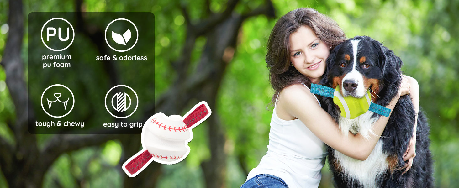 - High Quality Dog Balls: This puppy toy ball is made of PU foam, which is safe and odorless, with high density and good elasticity. Its irregular bouncing adds endless fun. 2 nylon straps securely fasten to the ball through pressure and will not be easily pulled off
