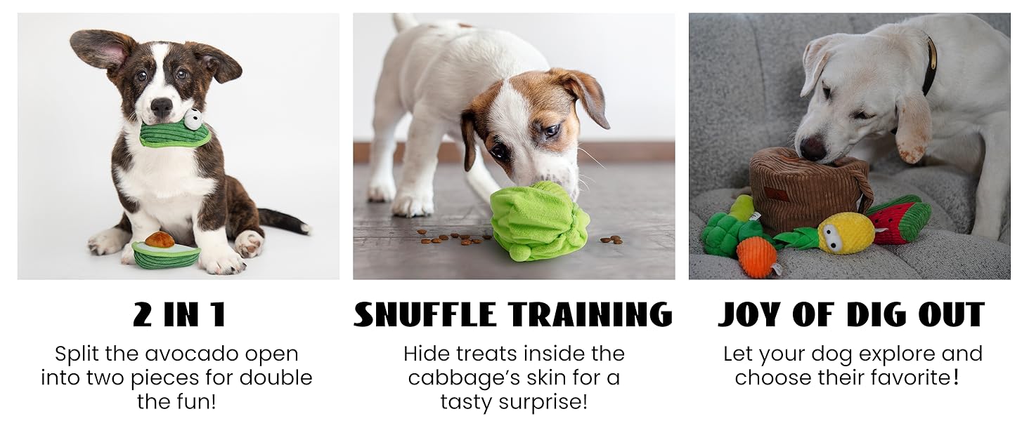 - 15 Pack Squeaky, Crinkly and Interactive Fun:All the small dog toys has one built-in squeaker or crinkle paper, which can engage your dogs' curiosity. And the various cute fruits and vegetables shapes keep your dogs busy all day long