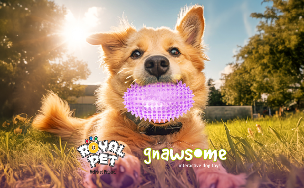 The XL Gnawsome 4.5” Spiky Squeaker Ball Dog Toy is a wellness powerhouse and an engaging playmate for your pet. As fellow dog lovers, the Royal Pet team pours our heart and soul into creating products that go above and beyond for our customers and their precious companions. Crafted to promote good dental and gum health, our Squeaker Ball features a distinctive gum-massaging, spiky texture that your pet will adore. The hidden internal squeaker adds an extra layer of excitement to playtime while ensuring there are no choking hazards, making it perfect for smart, curious pets. Day or night, the toy’s texture, sturdiness, and vivid colors make playtime engaging and exciting. Crafted from food-grade, BPA-free TPR material, it not only entertains but also offers a lasting play experience in any setting. Take it along on trips to the beach or park for an enthralling game of fetch. Designed for dogs of all sizes, the 4.5-inch diameter ensures hours of joy, exercise, and mental stimulation. At Gnawsome, we're not just providing a pet product; we're delivering a promise of premium quality, safety, and family-oriented care. Treat your treasured pet to a toy that mirrors the love and dedication you have for them.