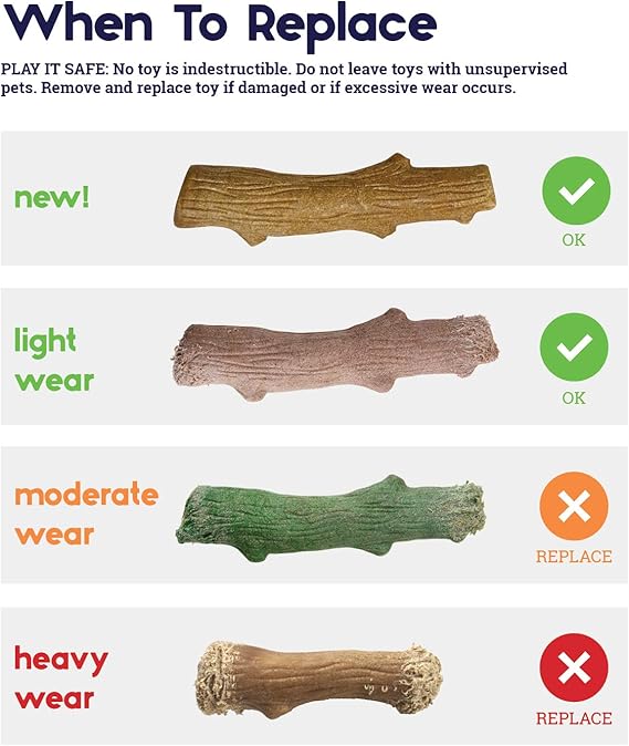 A safer alternative to chewing real wood sticks, Outward Hound's Super Dogwood has all the taste and texture of a natural tree branch but will last much longer for your beloved pup! Made in the U.S.A. to ensure quality and care, the Dogwood product line brings real wood to your dog's favorite durable chew toy to help keep dogs busy and entertained for long-lasting fun. With a variety of shapes and sizes - from normal Dogwood to jumbo Super Dogwood and unique shapes like the Dogwood Jack - plus scents like the smell of real wood, mesquite BBQ, peanut butter, beef, and more, these alternative chew toys are great for letting your dog work out their instinctual chewing behavior, help calm dog anxiety and stress, and help pups deal with teething gums. Dogwood alternative wood chew sticks are also great for outdoor chew time and come in calming hemp, fresh breath mint, and even TPE versions for teething puppies! Available in multiple shapes, sizes, and scents, single packs to two-packs, there's a Dogwood chew toy for every dog, whether a puppy, small dog, medium dog, or large dog. Enjoy the durability, less mess, and chew satisfaction of the Super Dogwood by Outward Hound. SAFETY & CARE: Alternative chews are non-edible and are meant for dogs only. As with any chew toy, we always recommend monitoring your dog's use and replacing after reasonable wear, no toy is indestructible. Ultimately, your pet's safety is your responsibility. Remove if chew toy is less than half of its original size or pieces larger than a piece of rice are chewed off. Know your dog’s chewing habits and teeth strength, your pet’s safety is your responsibility. For additional safety information, please visit outwardhound.com/safety to review our suggested 10 Chew Commandments.