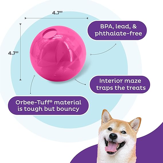 Outward Hound Orbee-Tuff Mazee Interactive Dog Puzzle Toy, Treat Dispensing Slow Feeder Ball, Pink, 4.7-Inch