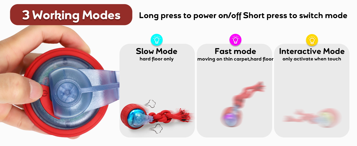 - 【3 Modes (Fast/Slow/Interactive)】 The electric dog toy ball features Fast mode for high-energy chases, Slow mode for relaxed play, and Interactive mode with random direction changes to spark your puppy’s natural instincts
