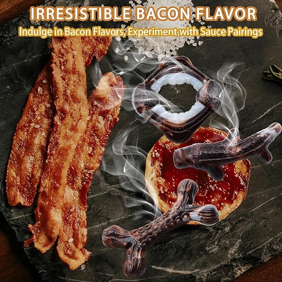- 【REAL BACON FLAVOR】Indulge your dog's taste buds with our 3 - pack of indestructible toys, generously infused with authentic bacon flavor. The irresistible aroma not only piques your dog's chewing instincts but also transforms each playtime into a delicious adventure.