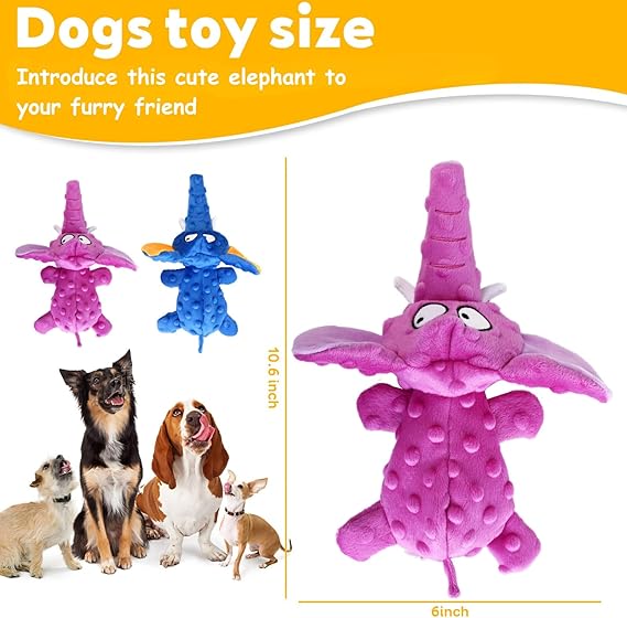 - Adorable elephant design: Perfect for keeping your dog entertained with our toys for dogs to keep them busy. This plush dog toy features multiple squeakers for added fun, making it one of the best dog toys for interactive play.