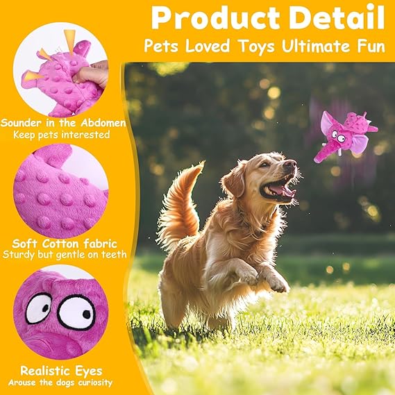 - Multiple sound points: This squeaky dog toy can make sounds from ears, nose, and abdomen. keep your dog engaged and stimulated. It’s a great choice for dog stimulation toys and puppy toys to keep them busy, providing endless entertainment.