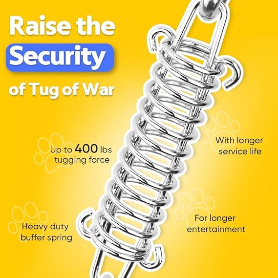 - Shock-Absorbing Spring for Safe Play - The stainless-steel spring acts like a cushion, absorbing shock to protect your dog’s teeth, neck and joints during intense tug sessions. Rust-resistant and weather-proof for all-season outdoor fun