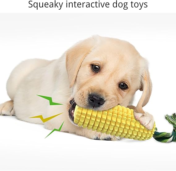 Dog Chew Toys for Aggressive Chewers,Corn Interactive Squeaky Dog Toys for Puppy Medium Breed,Tough Rubber Dental Chew Dog Toys