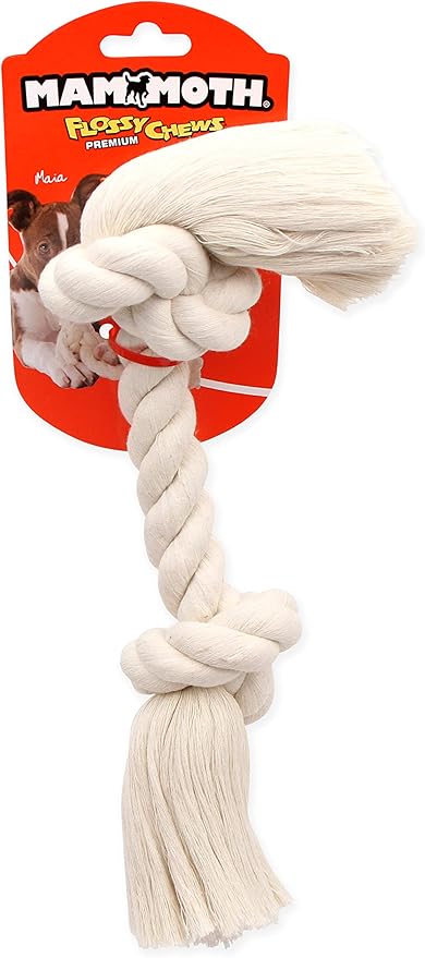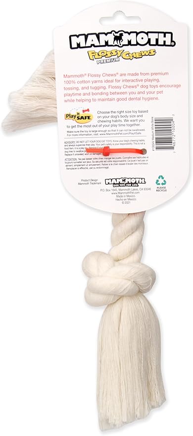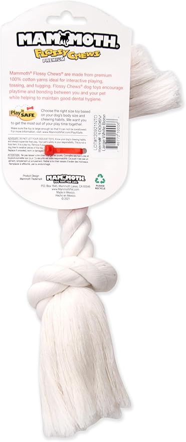 Mammoth Pet Products Dog Flossy Chews 100-Percent Cotton White Rope Bone, Medium, 12-Inch (10004V), All Breed Sizes