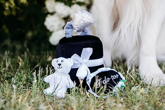 - Wedding Themed Plush Dog Puzzle Toys: Relieve your pup's wedding day jitters with this interactive hide and seek dog toy that gives your furry friend hours of fun by activating their seeking instinct - watch them burrow & dig the wedding themed Miniz out of the Wedding Ring box
