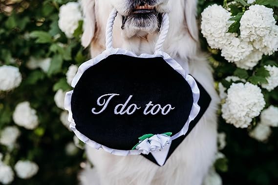 ZippyPaws Wedding Toy - Dog Squeaky Toy to Keep Them Busy, Cute Plush for Small, Medium, & Large Dogs, Stuffed Puppy Toy, Pet Products, Gift for All Breeds, 2 Round Squeakers - "I Do Too" Wedding Sign
