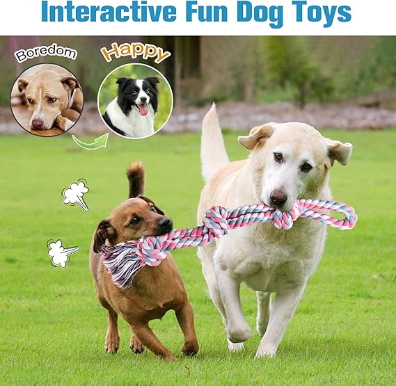 - Great fun: Tightly woven twists and strong knots allow our dog toy to withstand severe bites. This sturdy rope toy is perfect for a lonely dog to play at home, play tug of war with you or as an outdoor dog toy. It must be your dog's favorite toy.