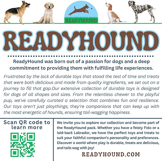 Introducing our ReadyHound Pizza Dog Toy, the ultimate choice for vigorous play. Designed for those with a penchant for aggressive chewing. Beneath the surface, this robust dog toy is crafted from exceptionally durable materials, ensuring its endurance during the most spirited play sessions. ReadyHound Dog Toys are constructed with puncture-resistant fabric and reinforced with sturdy cross-stitching and binding. Complemented by an amusing interior squeaker, their tough exterior guarantees to keep your dog active, engaged, and stimulated.
