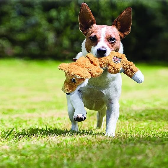 KONG Scrunch Knots are realistic pet toys that keep dogs coming back for more. Plush material scrunches around the internal coiled rope, while stretchy sides create natural movement to entice play. The internal knots satisfy natural instincts and these toys contain no stuffing for less mess. Squeaks for added enjoyment! Covered by KONG Satisfaction Guarantee. See KONG Satisfaction Guarantee document below for full details.