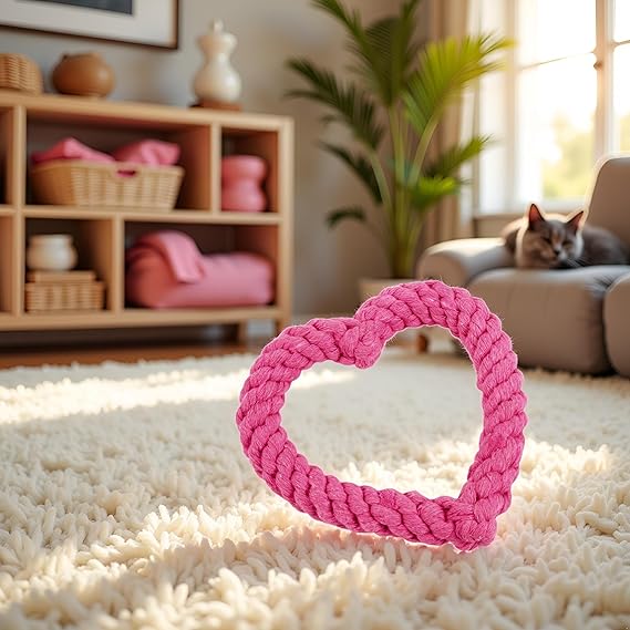 Treat your furry friend to this delightful pink heart-shaped chew toy that combines fun and dental care in one adorable package. Perfect for both dogs and cats, this durable rope toy is designed to withstand enthusiastic chewing while helping maintain your pet's dental hygiene. The creative heart shape adds a charming touch that makes it especially appealing for female puppies. Made with heavy-duty materials, this interactive toy encourages healthy play and helps prevent boredom. The rope texture provides a satisfying chewing experience while naturally cleaning teeth during play. Whether for training sessions or solo playtime, this versatile toy keeps pets engaged and entertained. Its thoughtful design makes it an ideal choice for pet parents looking for a cute yet practical addition to their pet's toy collection. The playful pink color and love heart design add a sweet aesthetic touch that both pets and owners will appreciate.