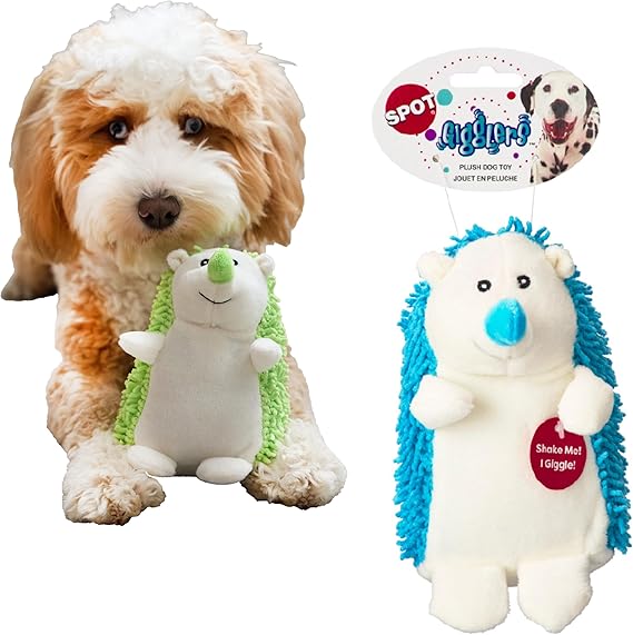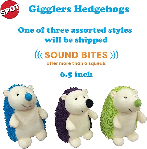 SPOT Gigglers Hedgehog Dog Toy with Giggle Sound | Textured, Plush Shake and Wiggle Hedgehog Giggle Toy for Small and Medium Dog Breeds, Assorted Colors