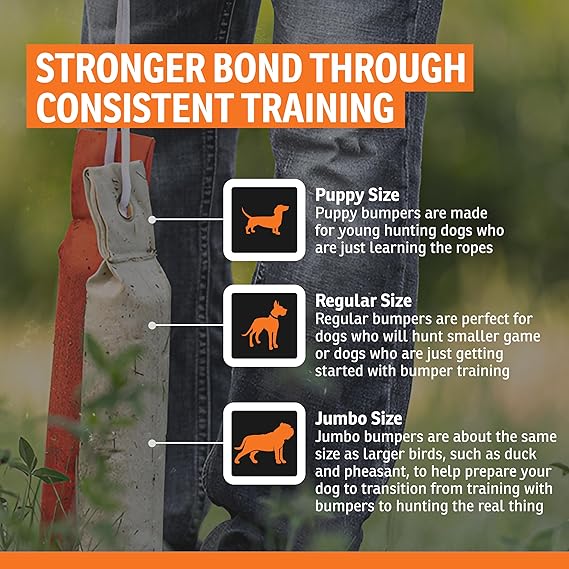 SportDOG Canvas Dummies - Hunting Dog Training Tool - Game Scent Absorber - Water-Ready Bumper - Durable Field Dummy - Weighted Toy - Puppy Size - 2.25" W X 8.5" L - Orange