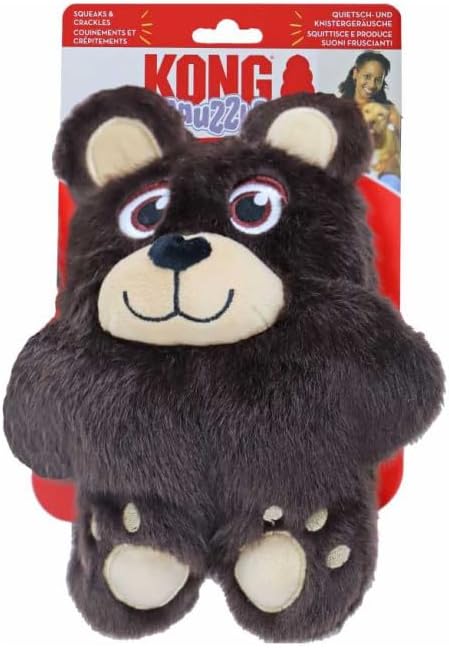 KONG Snuzzles Dog Toy, Plush Squeaker, Crinkle Sounds, Soft Durable Indoor Play (Bear, Medium)