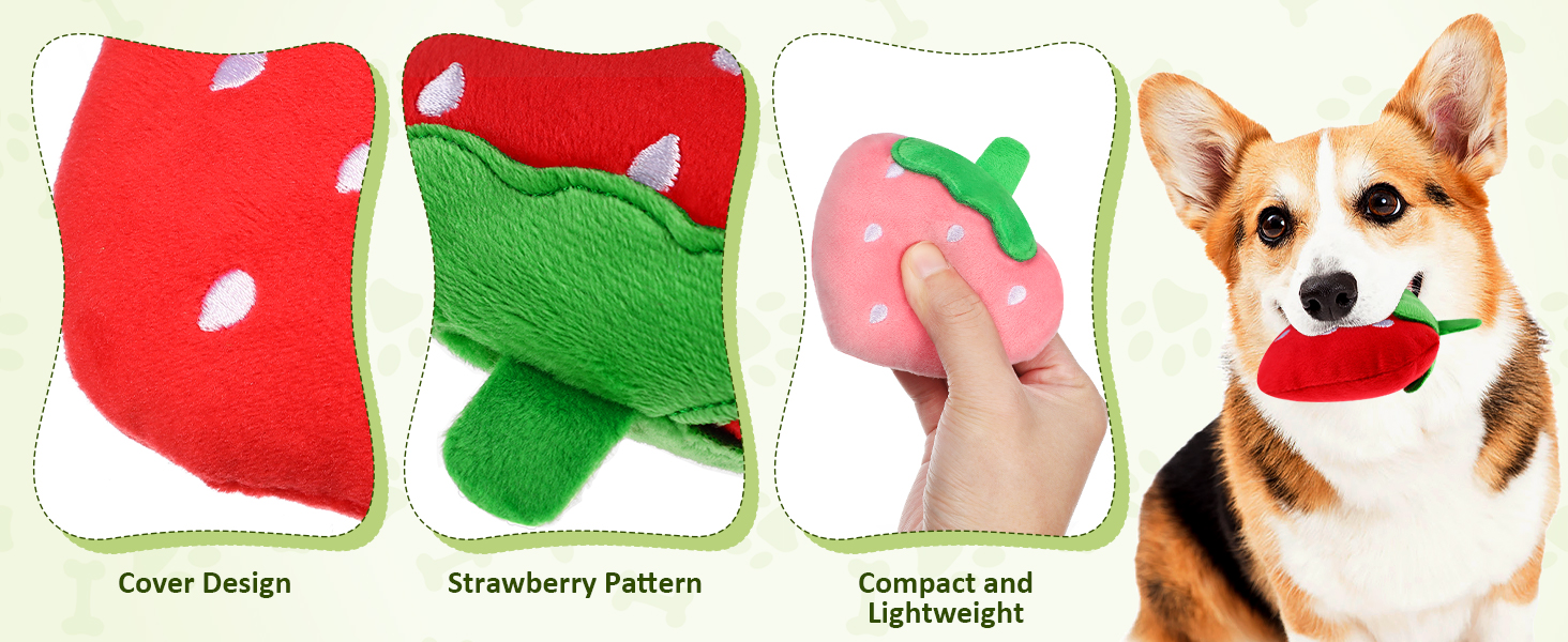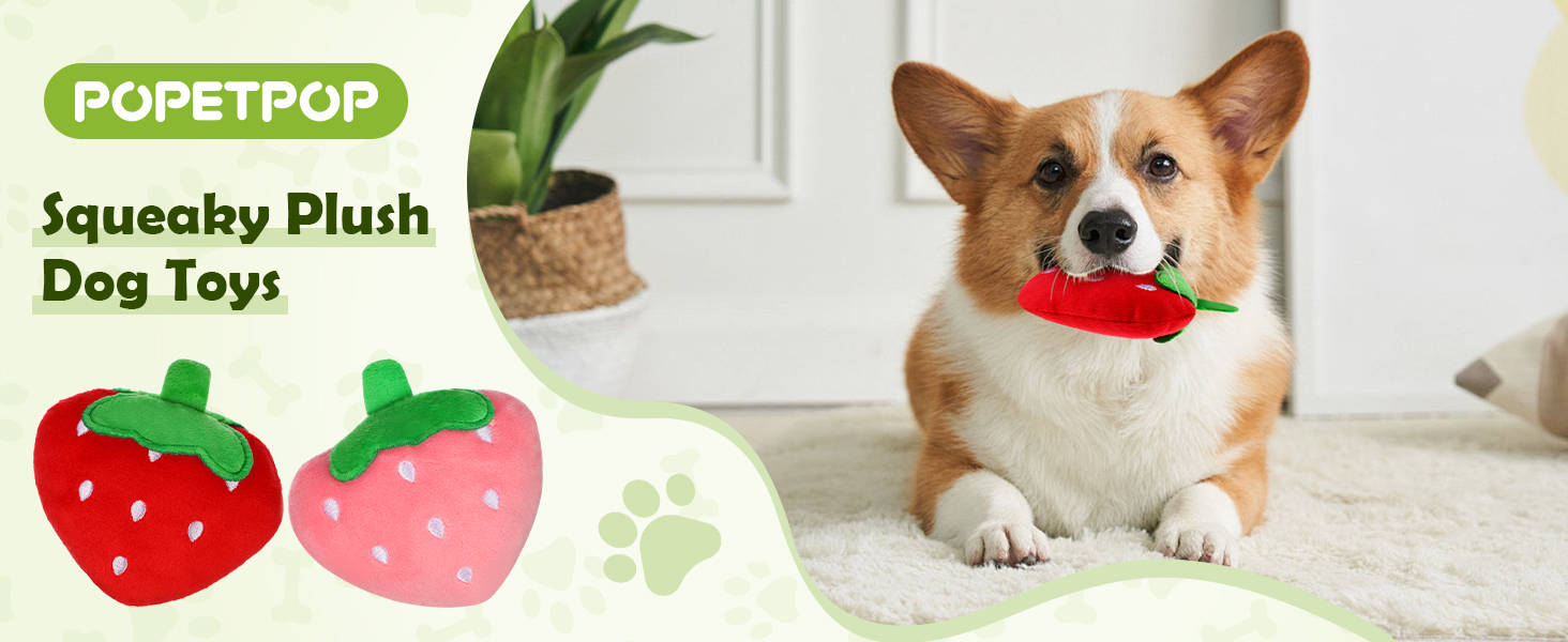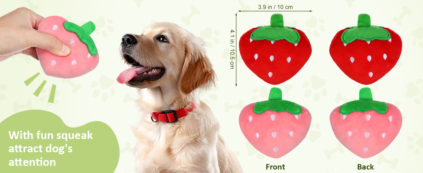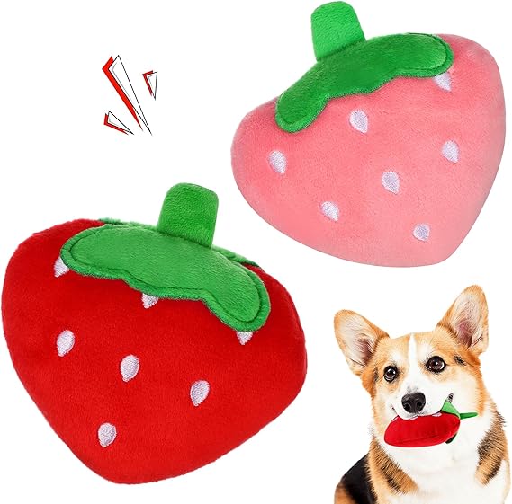 POPETPOP Squeaky Strawberry Dog Toy: 2Pcs Puppy Teething Toys Cute Dog Toy Squeaky Plush Dog Toys Dog Squeak Toys Interactive Dog Toys Dog Chew Toy for Small Medium Dogs