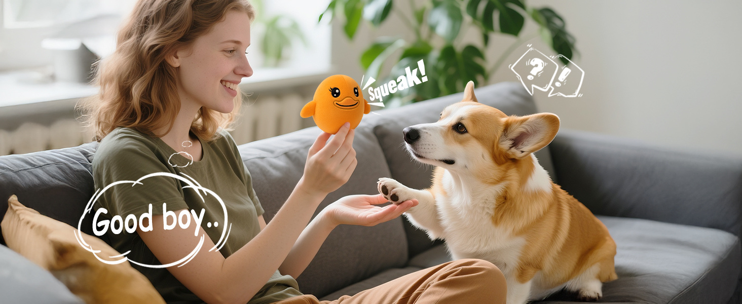 - Dog Squeaky Toys: These toys have crinkle ears and paws, plus a squeaker in the body. The built-in squeaker makes a cute sound when dogs chew or you squeeze it—not too loud, but enough to grab dogs' attention and make playtime more exciting. Perfect dog toys to keep them busy, relieve boredom, and encourage interactive play