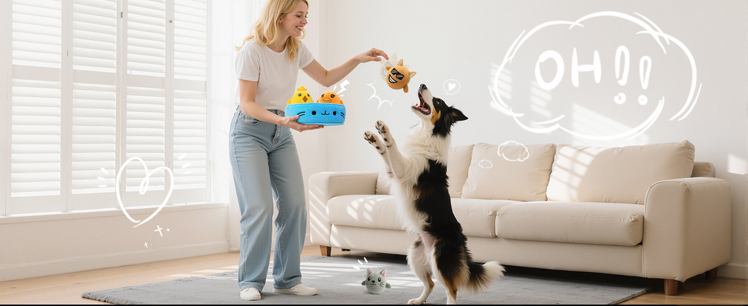 - Plush Toys for Dogs: These soft dog toys are made with soft short plush and filled with premium PP cotton, these stuffed dog toys are gentle on your pup's teeth and gums and can support light chewing while helping with oral engagement. Neatly stitched with well-stuffed construction and embroidered facial features, they're crafted with care for everyday play