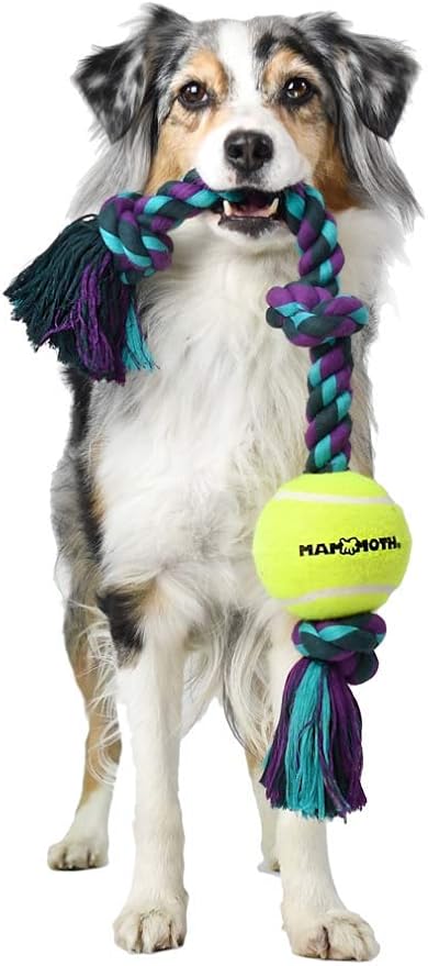 Mammoth Flossy Chews Tug with BIG 6-Inch Tennis Ball, X-Large, 36-Inch, Assorted Multicolor (51100F)